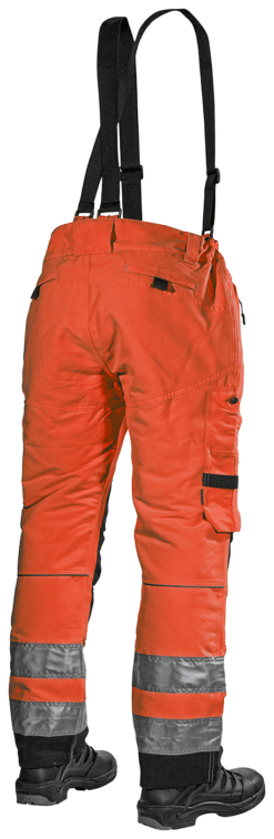 To sidelommer og to baklommer. Lårlomme med ID-kortholder samt inn- og utvendig telefonlomme. Innvendige knelommer i to høyder. Tommestokklomme samt avtagbare seler.