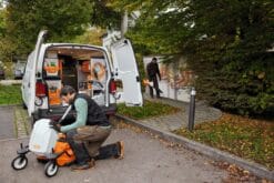 - Modellen er utstyrt med elektrisk variodrift og svingbare forhjul som gir høy komfort,