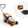 - Kraftig batteridrevet gressklipper med 46 cm klippebredde, for mellomstore plener.