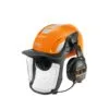 - Skogshjelm, komplett med radiohørselvern, rustfritt nettingvisir og nakkebeskyttelse.
