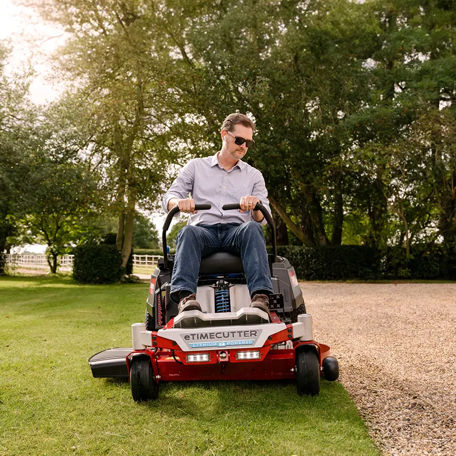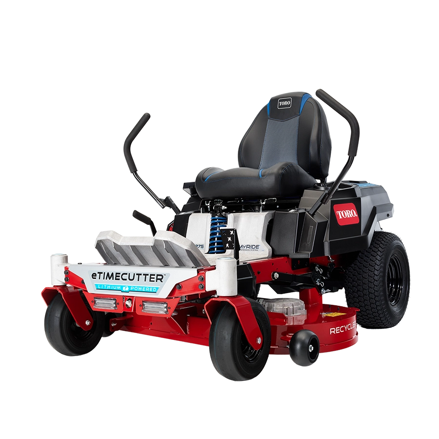 Spakbetjent, batteridrevet gressklipper – uovertruffen kjøreglede og ytelseIkke la uklipt gress komme i veien for sommerplanene dine. Med Toro eTimeCutter sitte-på klipper kan du raskt skape en vakker plen. Toros batteridrevne, komfortable, spakbetjente TimeCutter-klipper med MyRide-fjæringssystem gir en behagelig kjøreopplevelse. Utstyrt med en praktisk hurtigkobling som enkelt kan kobles til hageslangen ved rengjøring av maskiner.